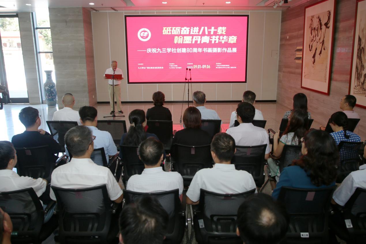 开幕式上,彭健铭宣布作品展开幕,并对展览的举办给予高度评价,他强调,此次书画摄影作品展不仅是对九三学社80年发展历程的生动回顾,更是以艺术形式凝聚共识、激发斗志的重要举措,为广大社员和艺术爱好者搭建了交流学习的良好平台,将进一步推动九三学社文化事业繁荣发展。