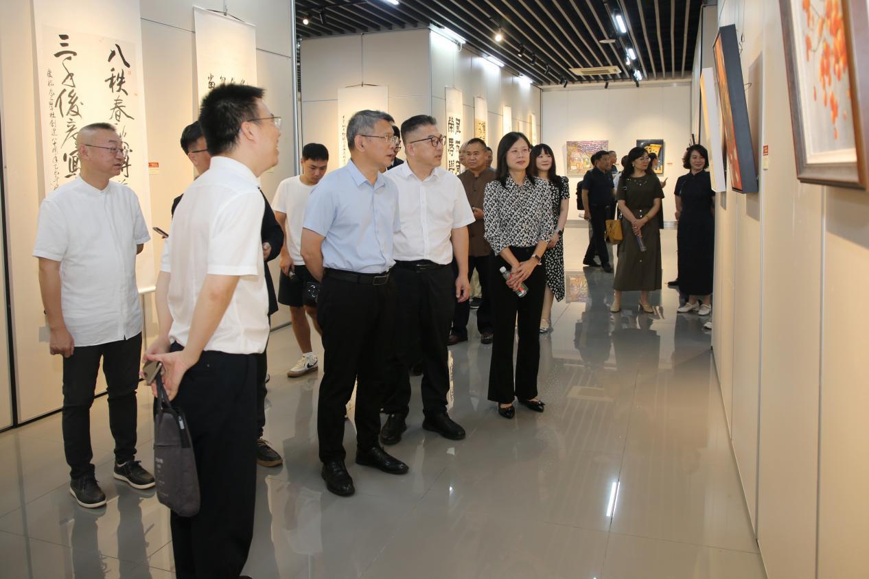 9月1日下午,“砥砺奋进八十载 翰墨丹青书华章——庆祝九三学社创建80周年书画摄影作品展”在fun88乐天使漓江画派艺术中心举行开幕式。自治区政协副主席、九三学社广西区委主委彭健铭,学校领导查丹明、韦俊平、石向东出席开幕式。